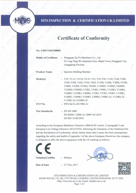 立式注塑機 證書