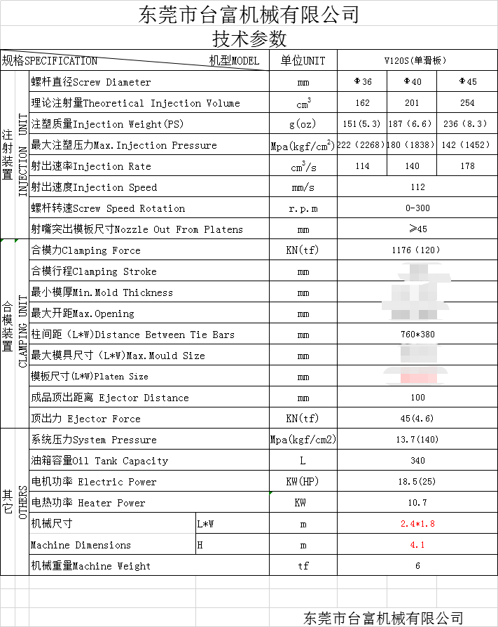 射出采用雙缸平衡式射出系統(tǒng),射出平穩(wěn)有力。